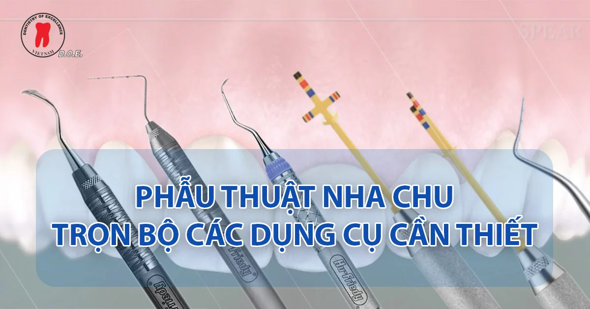 Phẫu thuật nha chu là lĩnh vực đòi hỏi sự tỉ mỉ, cẩn thận, khéo léo,… cho nên đầu tư những dụng cụ chuyên dụng sẽ giúp công việc chuyên nghiệp, thuận tiện, nhanh chóng hơn. Quý Bác sĩ có thể bắt đầu bằng những dụng cụ quan trọng như đục xương, dao Orban, dũa xương, nạo túi Gracey, bóc tách,… cho những ca phẫu thuật nha chu ban đầu của mình.